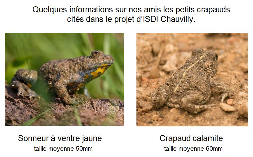 Le calamite parce qu’il est prolifique et le sonneur à ventre jaune parce que il vit probablement dans les zones boisées en dehors du chantier actif.