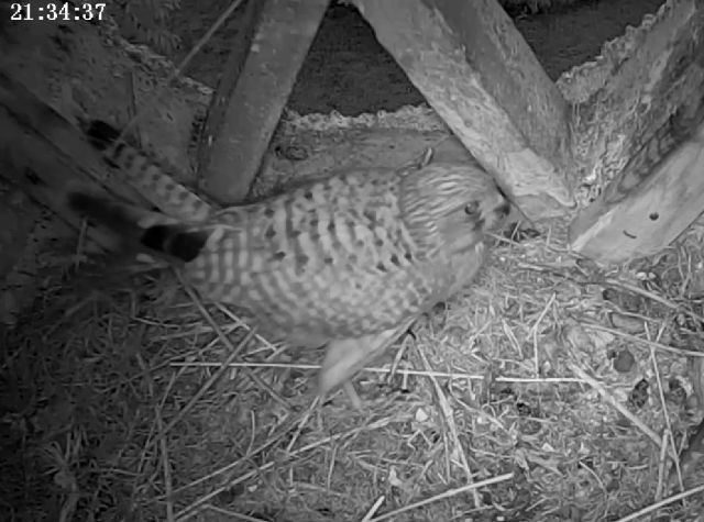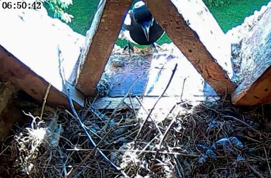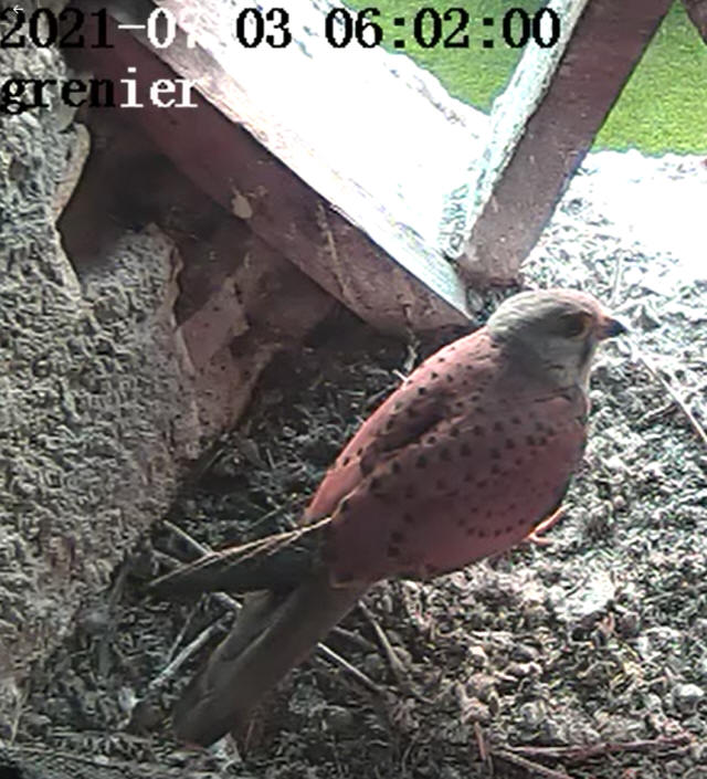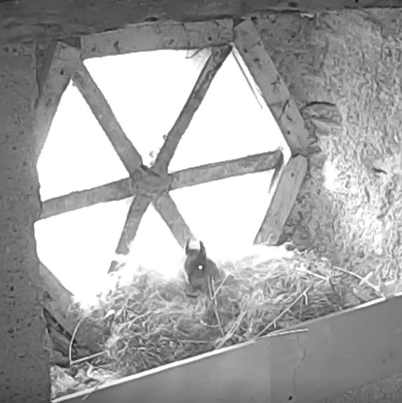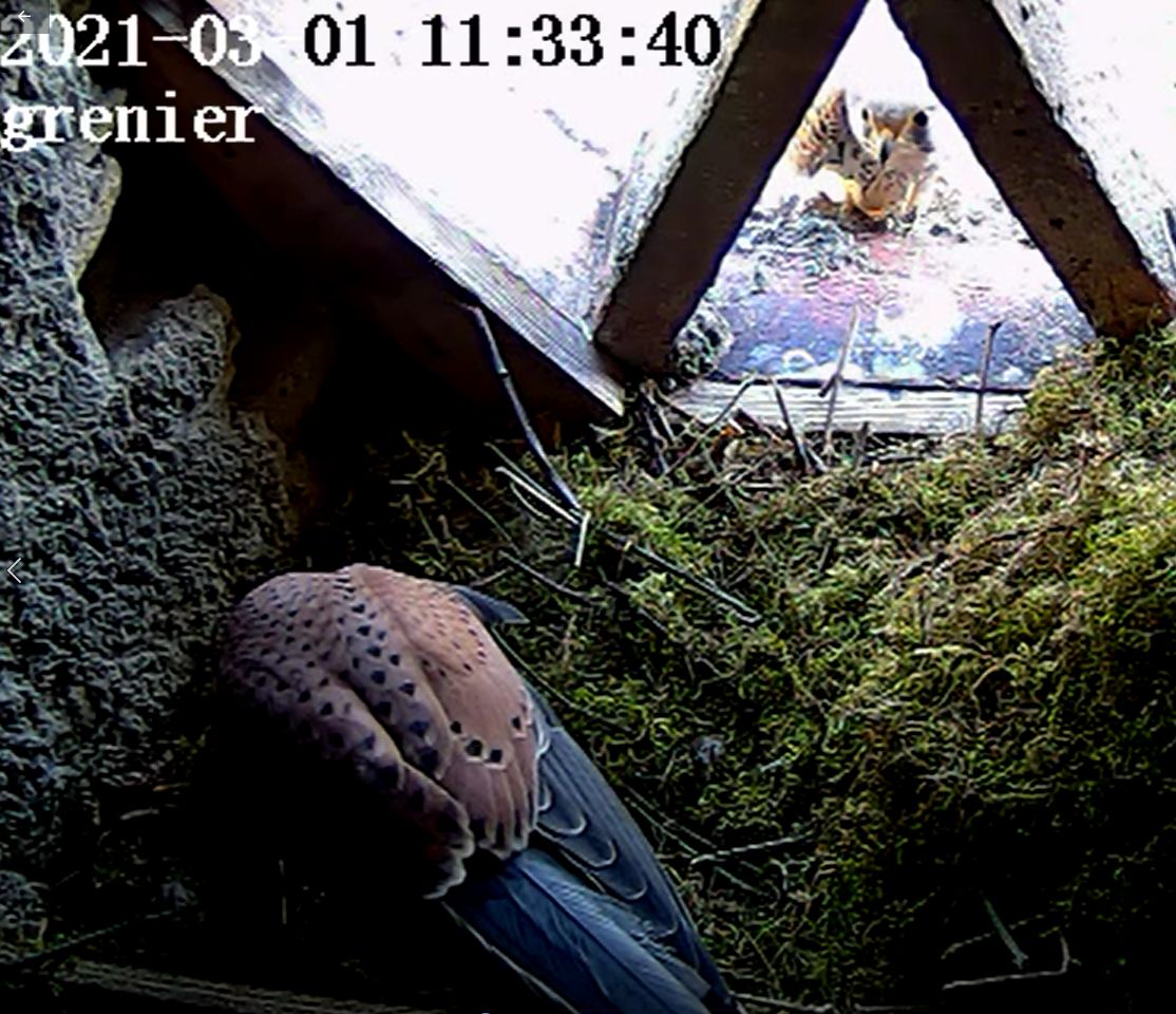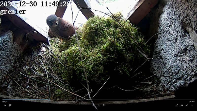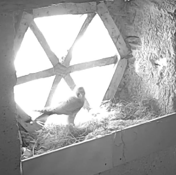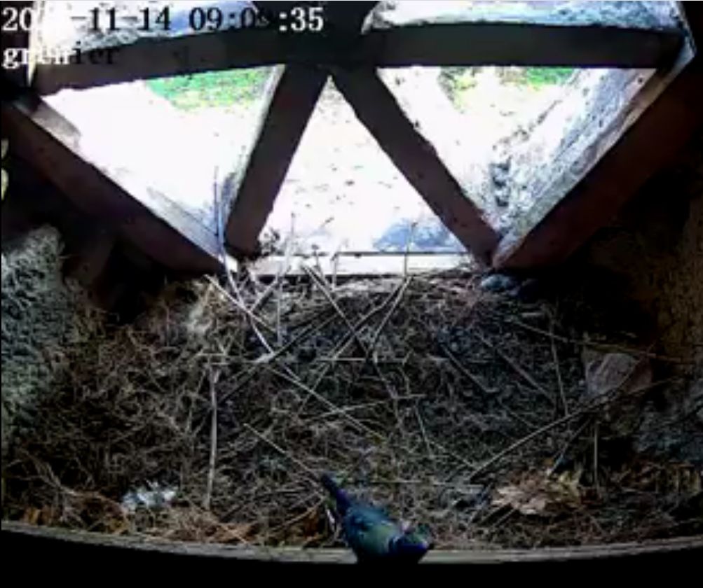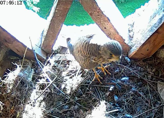 Apparition d'un faucon apparemment très intrigué par la présence du nid !! |