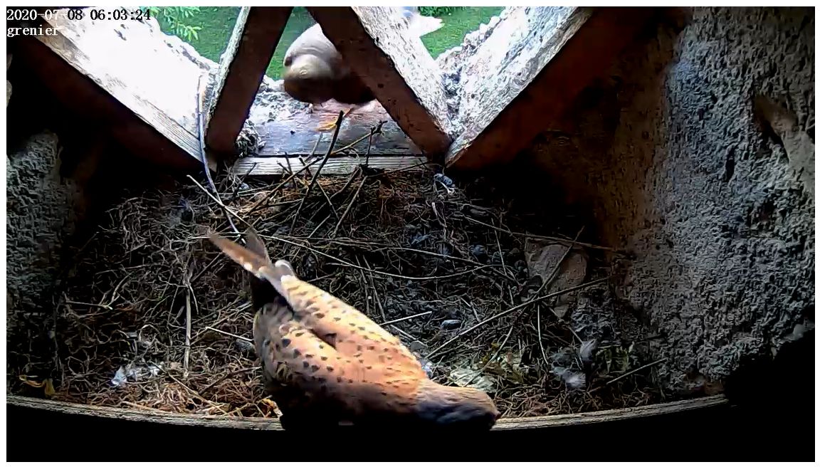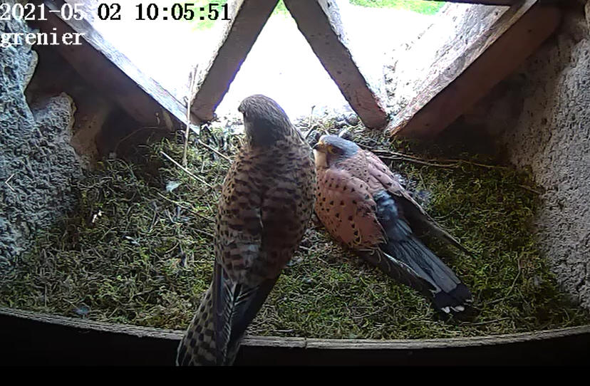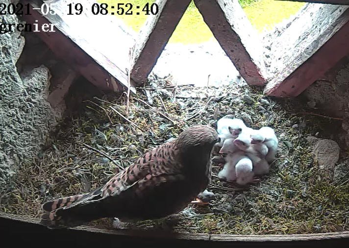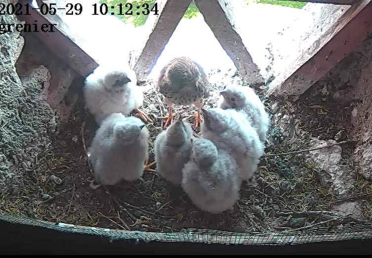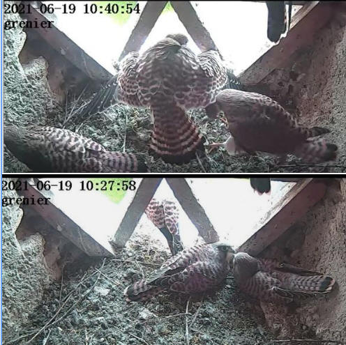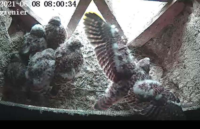 Lundi 29 juin il y a eu beaucoup d’animations dans le ciel autour de la maison. Vols en formations, montées dans les thermiques. Fréquents retours dans le tilleul et dans le grenier. Depuis plus d’images enregistrées, ils sont partis. Dans quelques temps ils auront le plumage qui nous permettra de les différencier, mâles ou femelles. De nouveau couples se formeront qui iront à la recherche d’un territoire. Samdi