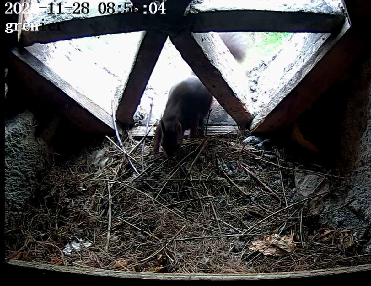 Nous soupçonnons que deux prédateurs ont profité de l’absence du faucon pour piller le nid