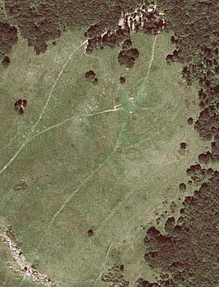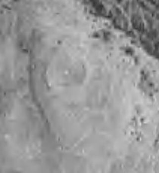 Extrait d’une photo aérienne prise en 1935. Il semblerait qu’à cette époque des pierres étaient encore présentes au centre et autour du cercle. Le cercle est très apparent c'est peut-être le mur de pierres sèches qui n'est pas encore recouvert de végétation