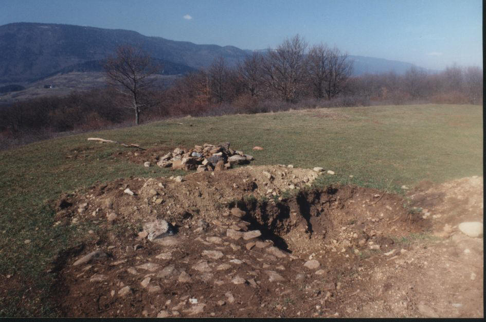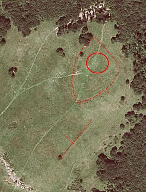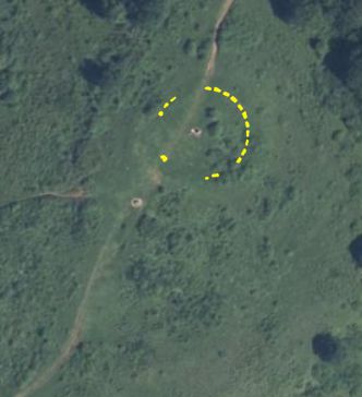 Sur certaines photos aériennes des traces apparaissent, ces traces peuvent être  également apparentes depuis le sol,  elles apparaissent plus ou moins en fonction de l’état de la végétation, de l’humidité, de l’éclairage. Une fouille sur le cercle a montré que sous ces traces il y a un mur de pierres sèches.
